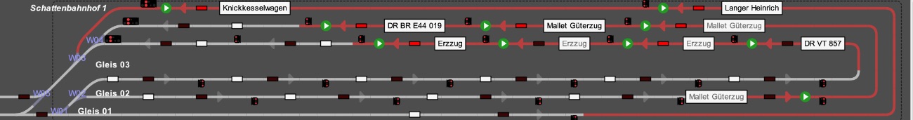 * Die gesamte Gruppe ist als Schattenbahnhof konfiguriert.