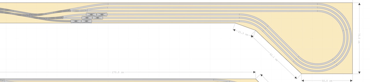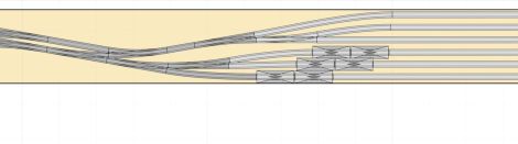 Zu Beginn nutzte ich eine klassische Gleisharfe, erweiterte diese aber später, indem ich einzelne Gleise in mehrere Blöcke aufteilte. Auf einem 2‑Meter‑Gleis entstanden so zwei bis vier Abschnitte, um unterschiedlich lange Züge abstellen zu können. Das brachte erste Verbesserungen, aber das volle Potenzial wurde damit noch nicht ausgeschöpft.