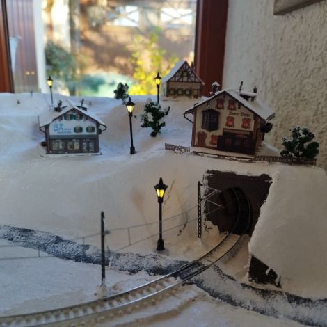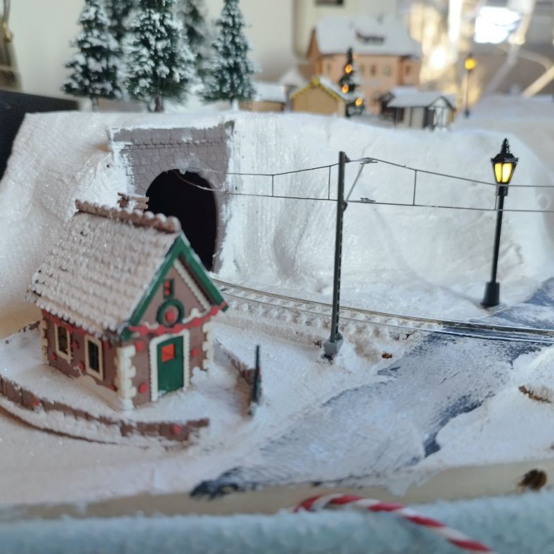 Wohnhäuser, die Schiller-Schule, ein Weihnachtsmarkt, ein kleiner Bahnhof, sowie das Haus vom Weihnachtsmann sind darauf zu finden. Dazu ein paar Straßenlaternen und sogar eine Oberleitung im Vordergrund, die im Tunnel endet!