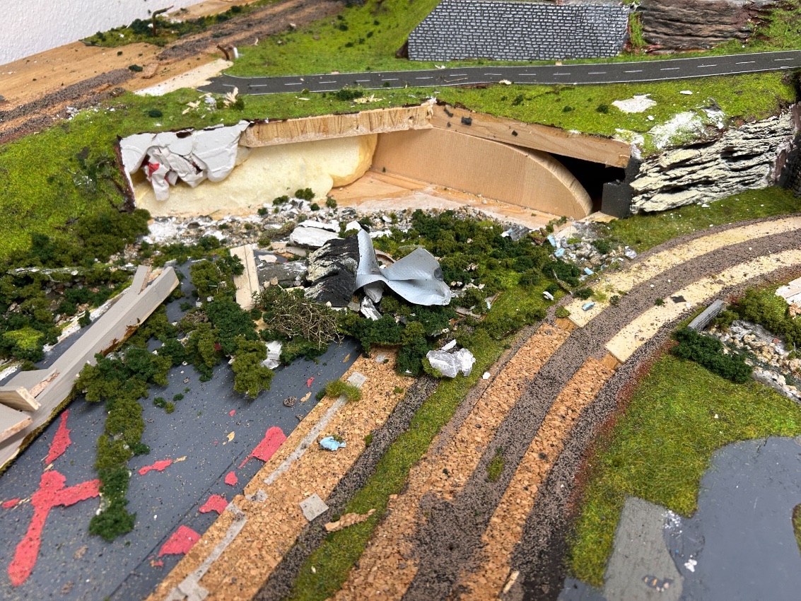 Leider musste ich im Sommer 2025 meine Arbeiten an der Anlage unterbrechen, da ich in meinem Keller Renovierungsarbeiten wegen feuchten Wänden durchführen musste. Ein mittlere bis große Katastrophe. War ich doch kurz meinen 2. großen Bahnhof und die Landschaft rundum fertig zu stellen.