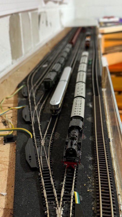 Insbesondere der Umbau des Schattenbahnhof hat sich gelohnt. Durch die Erweiterung zu einem sequentiellen Zugspeicher kann ich jetzt mehr Züge abstellen, benötige weniger Weichen und habe eine höhere Betriebssicherheit.