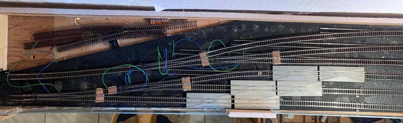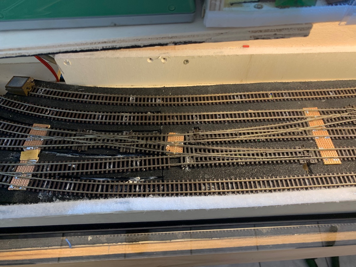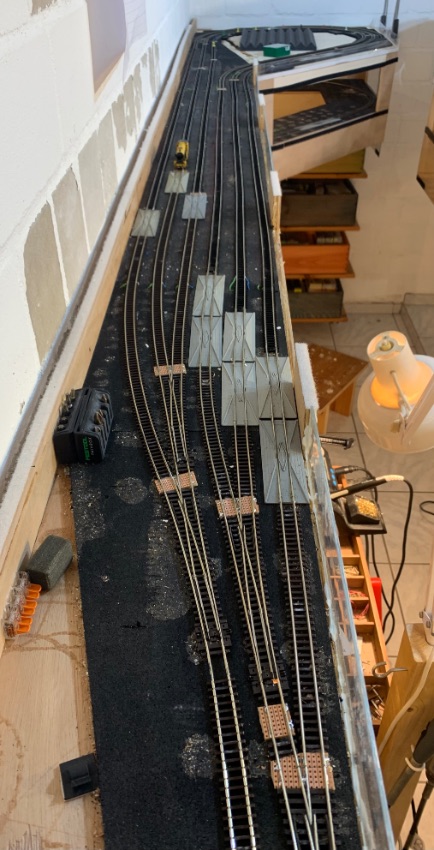 Die bestehenden Gleise konnten bleiben, allerdings mußte für Gleis 4 & 5 die Polarität gedreht deren, da sie nun in entgegengesetzter Richtung befahren werden.