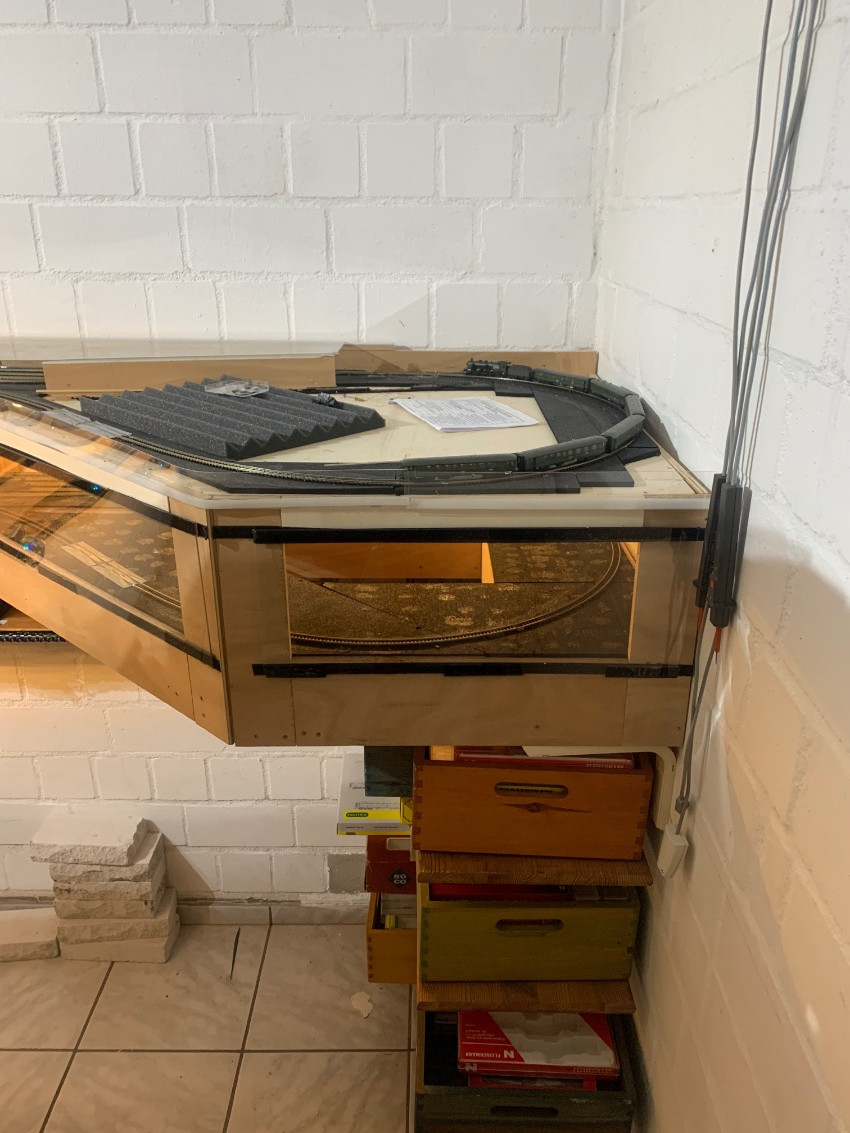 Abdeckung des Schattenbahnhofes unter Plexiglas zum Staubschutz für Loks & Wagen, zugleich nutzbar als Ablagefläche
