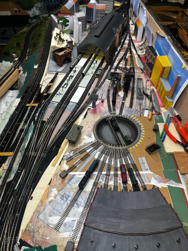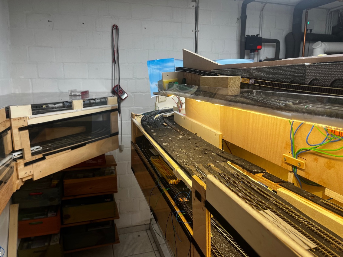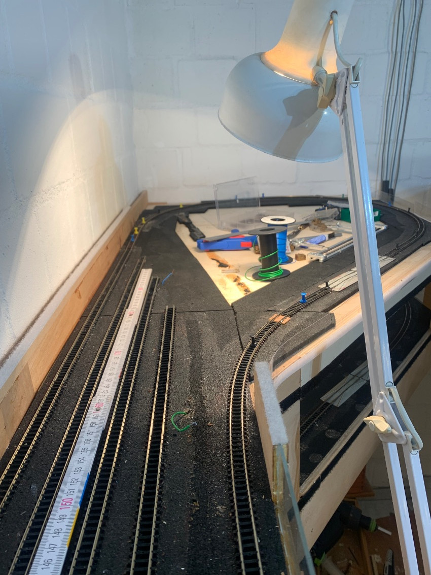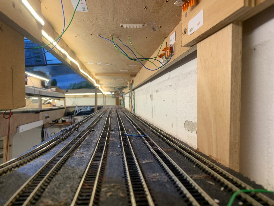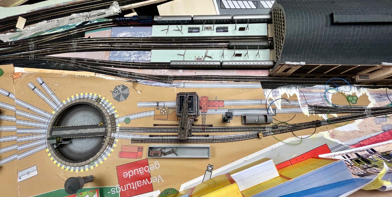 Der Umbau der Schattenbahnhöfe ist abgeschlossen und zugleich habe ich (fast) alle DKW & Kreuzungen aus der Anlage entfernt. Ebenfalls erreicht ist eine weiterer wichtiger Meilenstein: nach vier Jahren Bauzeit liegen alle Gleise (wenn auch im BW die Weichen noch nicht angeschlossen sind). Im Januar 2022 habe ich meine alte Anlage nach ebenfalls gut 4 Jahren Bauzeit abgerissen und neu angefangen.