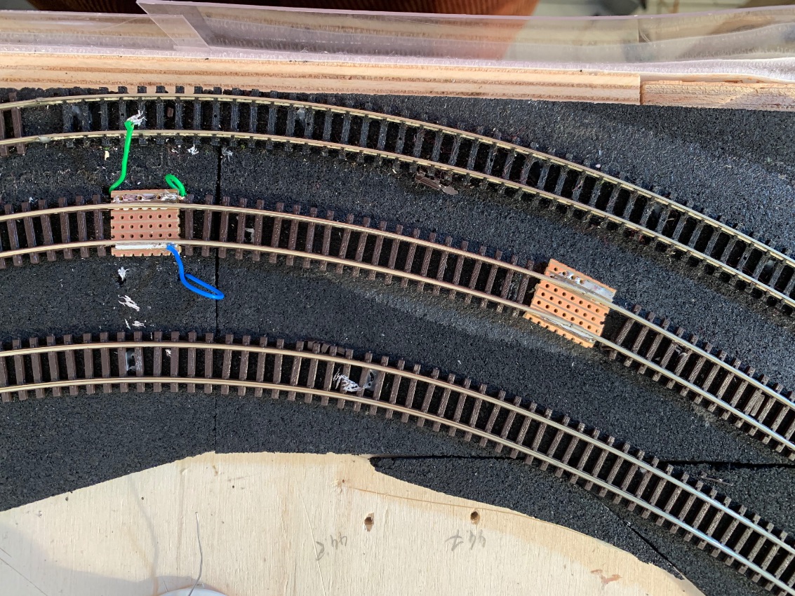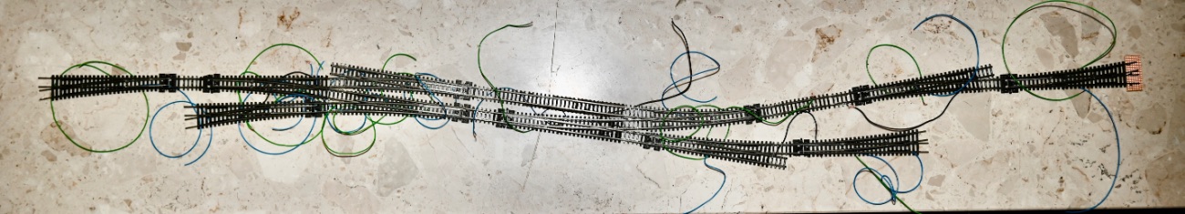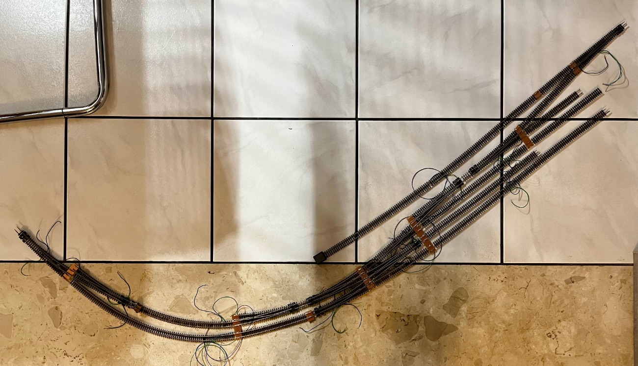 - Weichenstraßen außerhalb der Anlage verlöten und verkabeln. Das ist einfacher, als einzelne Weichen auf der Anlage zu verbinden. Zur Frage, ob man bei Peco immer löten sollte, gibt es durchaus kontroverse Ansichten. Hier gibt es einen durchaus lesenswerten Thread zum Thema: https://www.1zu160.net/scripte/forum/forum_show.php?id=1484490&start=1. Ich für mich bin zum Schluß gekommen, daß bei meiner Art zu bauen (Resorb auf Trassenbrett, viele Steigungen, etc.) Trennstellen, die ich aus Plastikverbindern gebaut habe, alle nicht gehalten haben und deshalb löten auf Trackswell im sichtbaren Bereich und Leiterplatten im nicht sichtbaren Bereich die beste Lösung ist